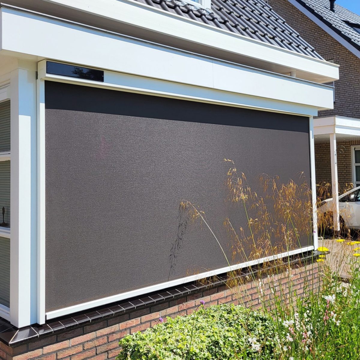 Zipscreen met solar motor voor slimme zonwering zonder kabels