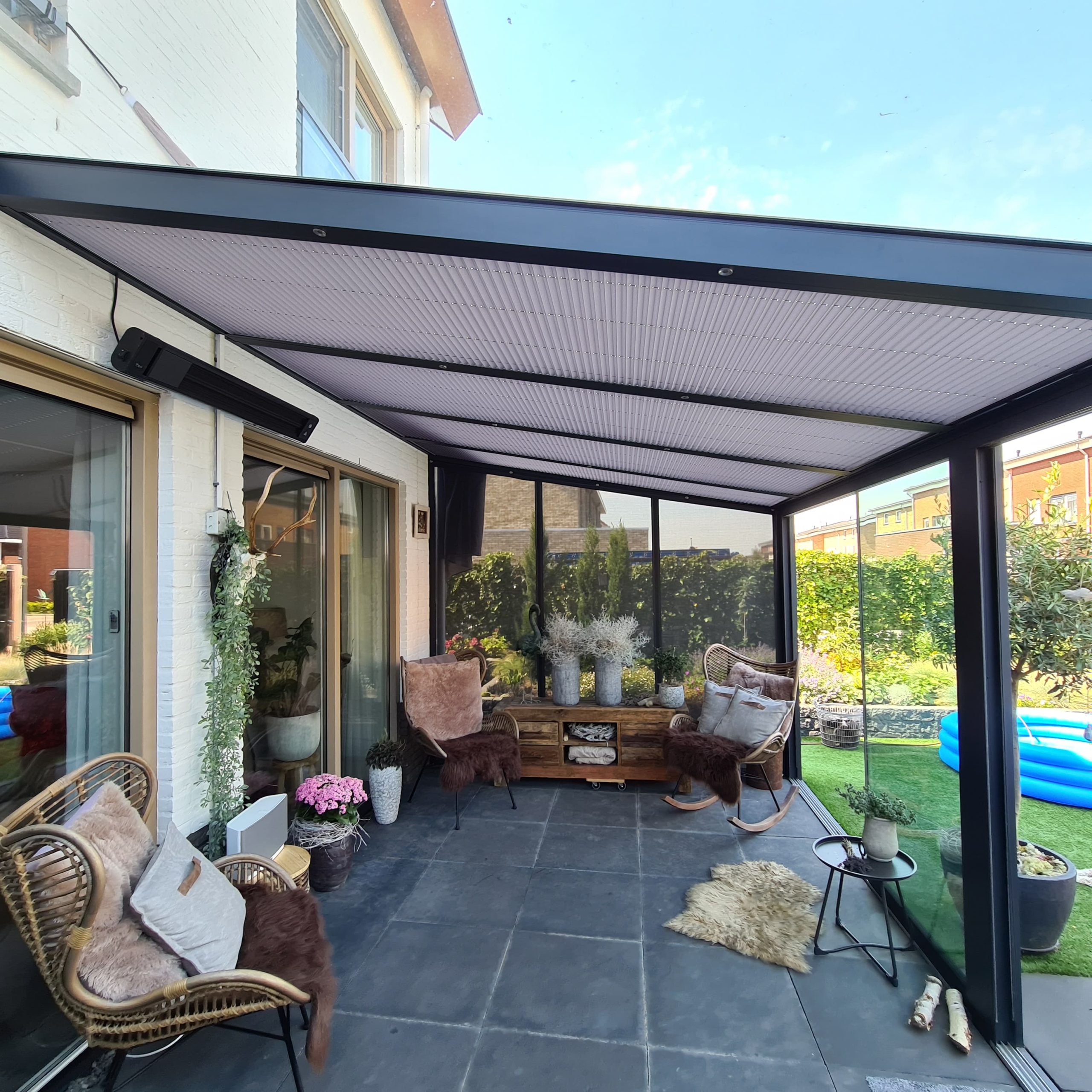 Plissé terrasoverkapping volledige foto schuin